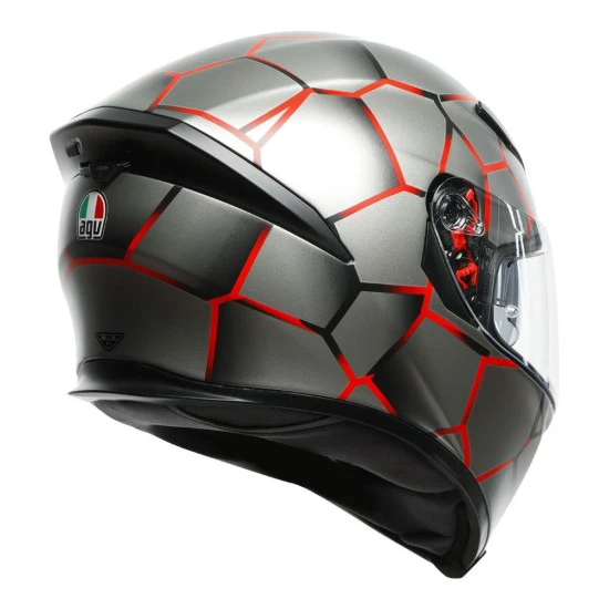 AGV’s latest version of this premium sport helmet now features a new construction for the inner liner, designed with high-performance fabrics and with no stitching in sensitive areas, making for an extremely comfortable fit. The lightweight shell is made from a carbon-fiberglass mix, while stability and aerodynamic performance are maximized thanks to an incorporated spoiler. The Integrated Ventilation System (IVS) has vents that are hollowed into the shell, and there’s also an internal drop-down sun visor, a removable nose guard and a new wind protector that keeps noise to a minimum.