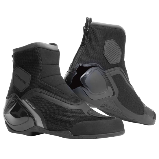 The brand new Dinamica D-WP® shoes combine an unmistakable sporty aggressive look, amazing protection and essential waterproofness. The D-WP® membrane allows to keep the foot dry in rainy conditions, while Dainese safety standards are granted by rigid inserts on ankles and heels and highly resistant fabric for the main body. During a mid-range ride on mountain roads or daily urban commute, comfort and sport feelings are fundamental features the most demanding riders can experience in this footwear.