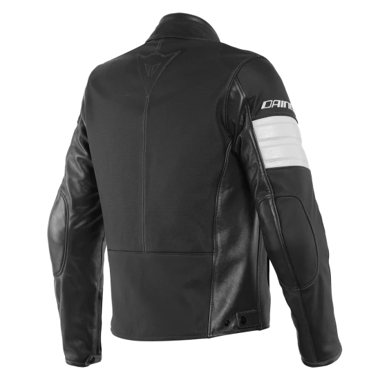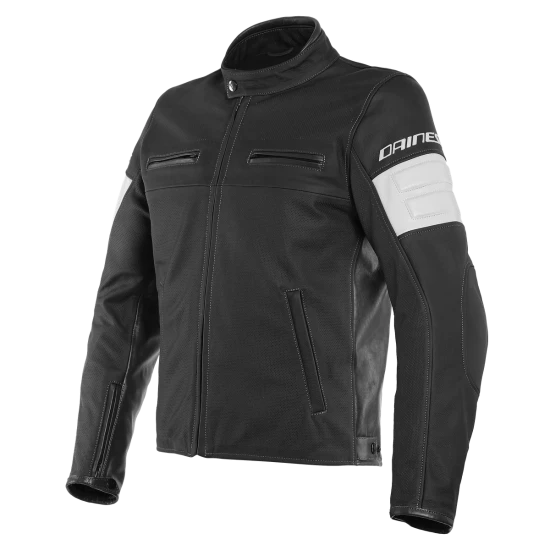 Timeless lines, the essence of the motorcycle jacket. This soft cowhide jacket is perfect for everyday use and for every ride. Comfortable and safe with the insertion of soft certified Pro-Armor protectors at the shoulders and elbows. The fit can be customized with the adjustment of the waist and cuffs. The perforated leather version is ideal for warmer climates.