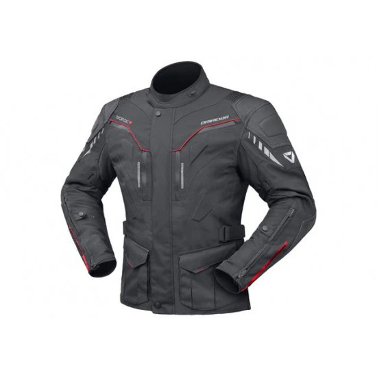The latest version of the legendary Dririder Nordic jacket has arrived! The Nordic V Sports Touring jacket is a premium jacket suitable for sports riding, touring and adventure. Be prepared for anything the road or trail may throw at you with CE level armour in elbows and shoulders, as well as a Hi-Density foam back pad. Cowhide leather provides additional protection to those high impact zones, and the Ripstop material used is incredibly strong and abrasion resistant.