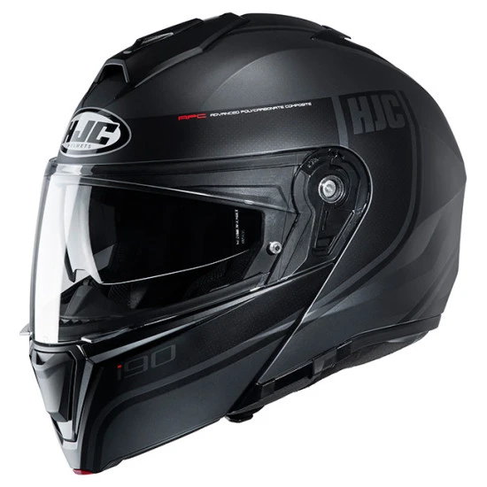 HJCโs i90 helmet brings a touring riderโs dream to life as a new addition to the iconic line.ย Created with the vision of flowing wind and open roads in mind, the low-profile, compact shell makes for a lightweight companion for whatever journey youโre on.ย An increased view, rapid-fire shield, and supercool interior come together to package all of your favorite features in one sleek, stylish design.ย Always keep your focus on the adventure ahead with the internal dropdown sun shield controlled by a smooth, wire lever that is easy to reach on the bottom of the shell.ย The i90 is Bluetooth compatible with SmartHJC.ย Sizes XS-2XL (DOT / ECE).