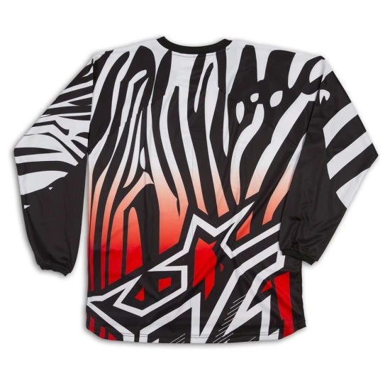 Raglan-style MX shirt with mesh. Panels under the arms for improved air circulation. Sublimated, non-fading, all over printing technique. Padded panels on the elbows. Extended back. Elastic seams with safety stitching. Redesigned sleeve for greater freedom of movement. 100% polyester microfiber.
