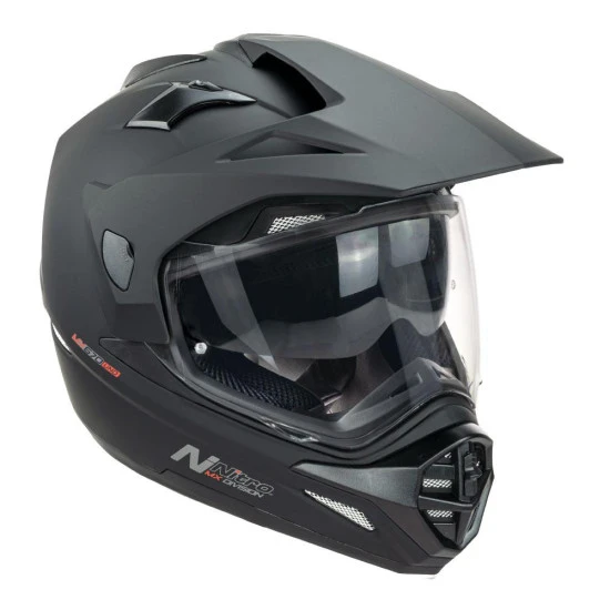 Tailored for adventure riders looking to travel distances in comfort, technology from Nitro’s F350 range and the MX620 motocross helmet combine to make the MX 670. ย An MX multi-poly tech construction shell features a peak and visor, which uses Nitro’s scratch-proof coating. ย There are adjustable chin bar and brow vents, plus rear exhaust vents. ย The comfort lining is removable and washable with cheek pad inserts, while fastening is complete with a micrometric buckle.